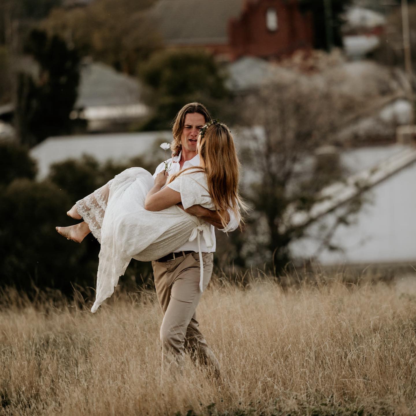 This would have to be one of my favourite photo’s from 2021 :)Captured by the talented Karissa from @imagephotography, when Konner decided to carry his bride- barefoot and all, across the park to their ceremony. it was the most relaxed laidback ceremony, beginning with them both taking a leisurely stroll up the hill on sunset to get married, where Konner swept Laura up in his arms, wowing everyone present.