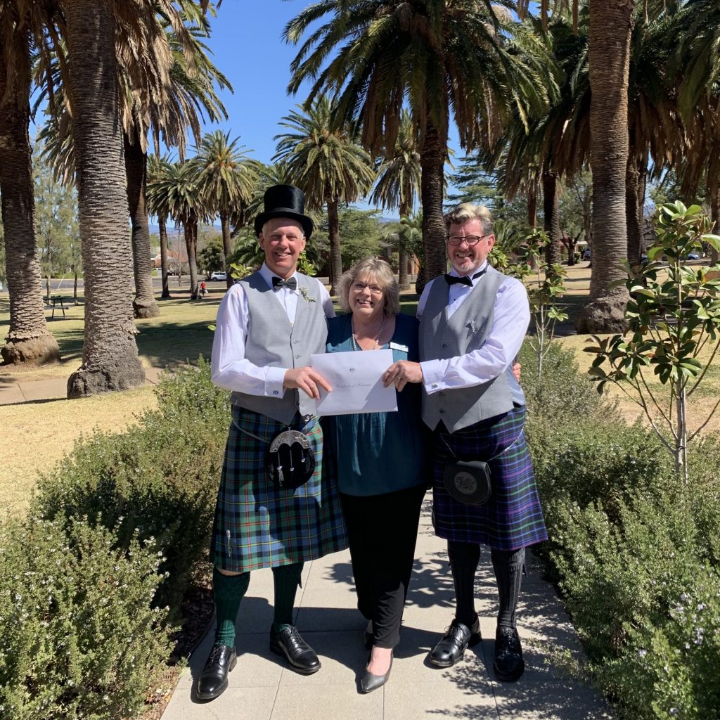 In general a Wedding Ceremony will last between 20-30 minutes, depending on the readings and vows you choose. You will need two witnesses over the age of 18 to witness and sign the official marriage documents, which I will then submit for you to the Birth Death and Marriages.
